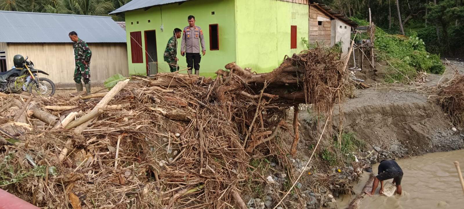 LUWUK - Kepolisian dari Polsek Bunta gerak cepat turun ke lokasi banjir yang terjadi di beberapa Desa/Kelurahan di Kecamatan Bunta Kabupaten Banggai, sejak Senin (6/10/2025) malam.