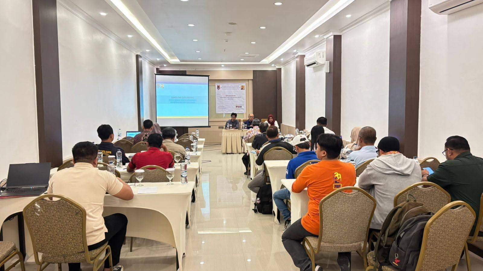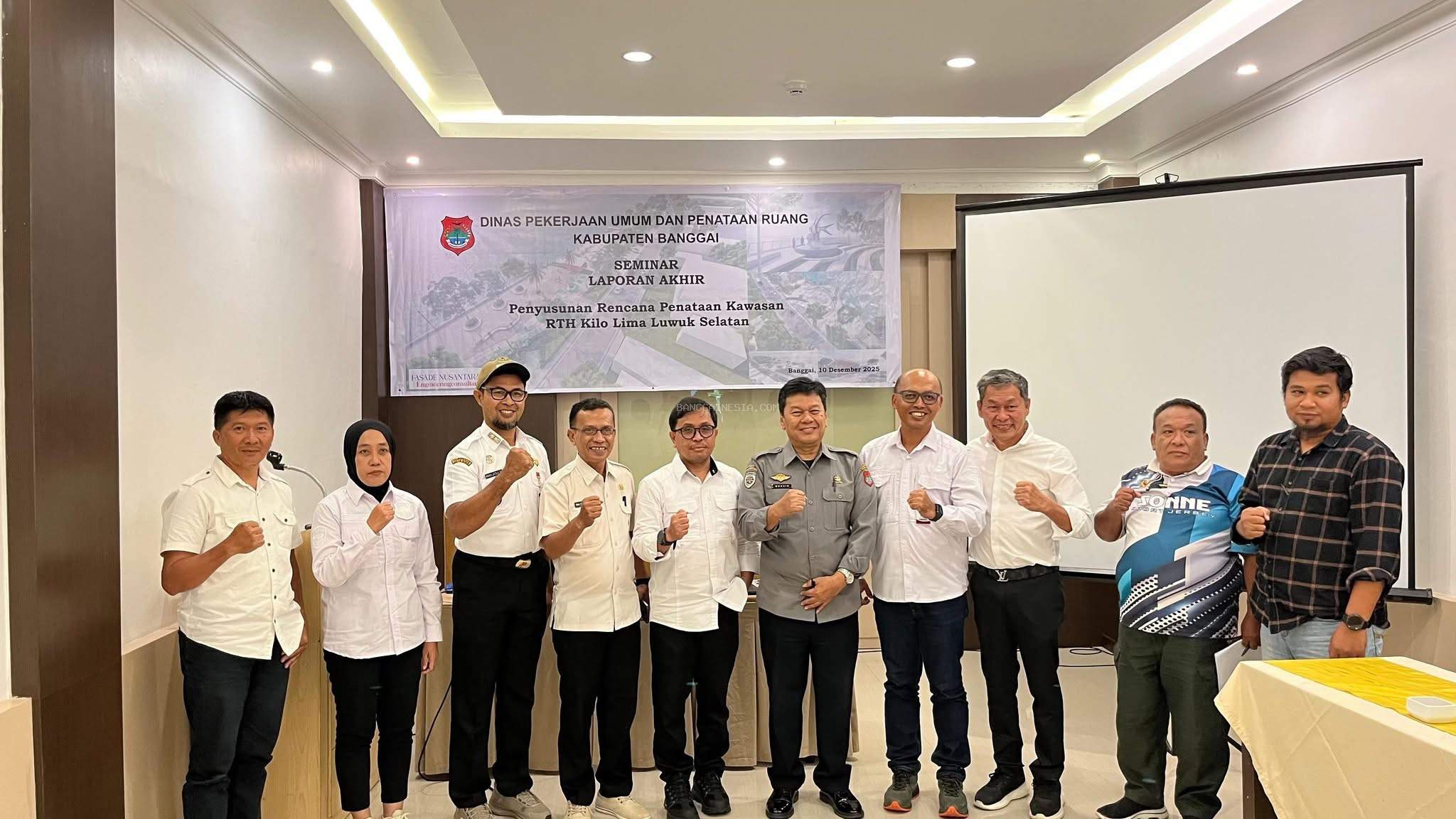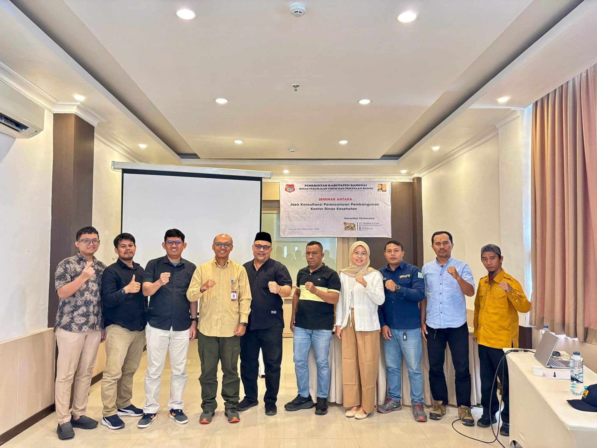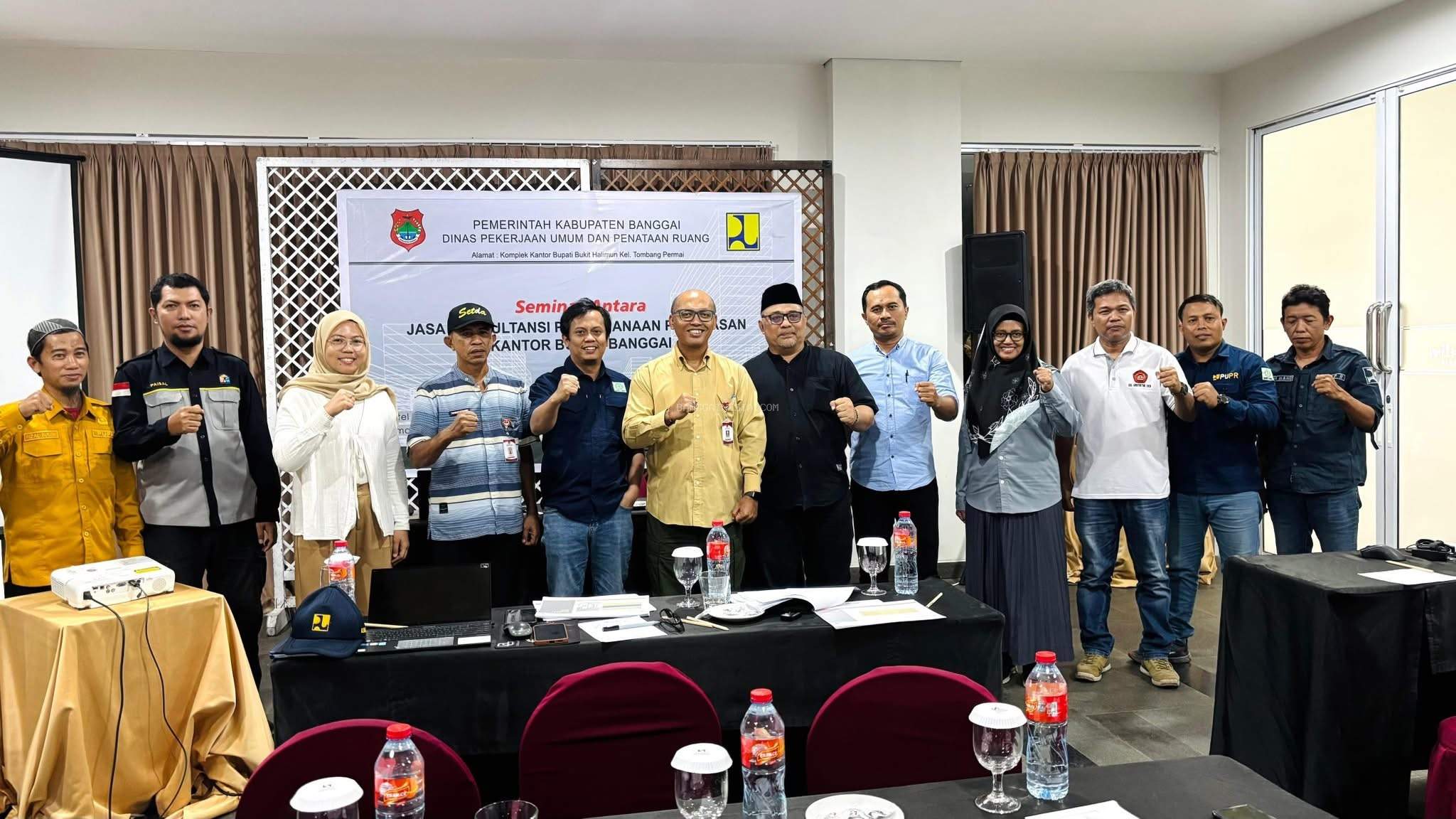 Kabid PBIK PUPR Banggai, Jati Arsana, bersama tim teknis dan konsultan dalam kegiatan Seminar Laporan Akhir Penataan R