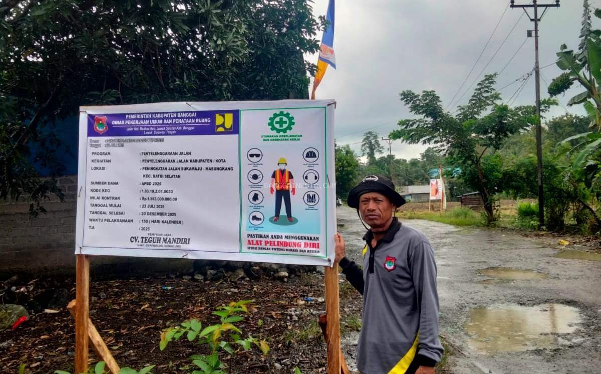 BATSEL, PIP - Pemerintah Kabupaten Banggai melalui Dinas Pekerjaan Umum dan Penataan Ruang (PUPR) mulai mengerjakan pengaspalan jalan di ruas Desa Sukamaju Satu yang mengarah ke jalur Desa Masungkang, Kecamatan Batui Selatan. Panjang jalan yang diperbaiki mencapai 1,5 kilometer dan menjadi salah satu usulan prioritas Musyawarah Perencanaan Pembangunan (Musrenbang) yang akhirnya direalisasikan pada tahun anggaran 2025.