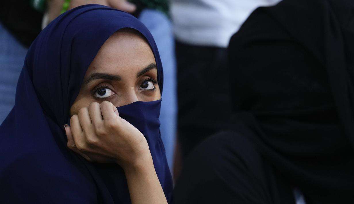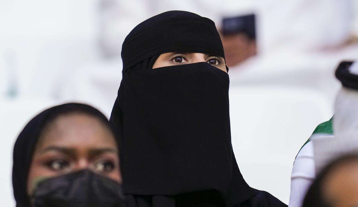 Para fans wanita Arab Saudi meramaikan pertandingan grup C Piala Dunia antara Polandia dan Arab Saudi, di Education City Stadium di Al Rayyan, Qatar, Sabtu, 26 November 2022.