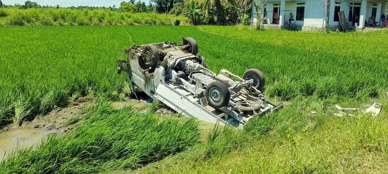 Polisi kemudian melakukan pengamanan di lokasi, mengevakuasi korban, serta berupaya menarik kendaraan dari dalam sawah.