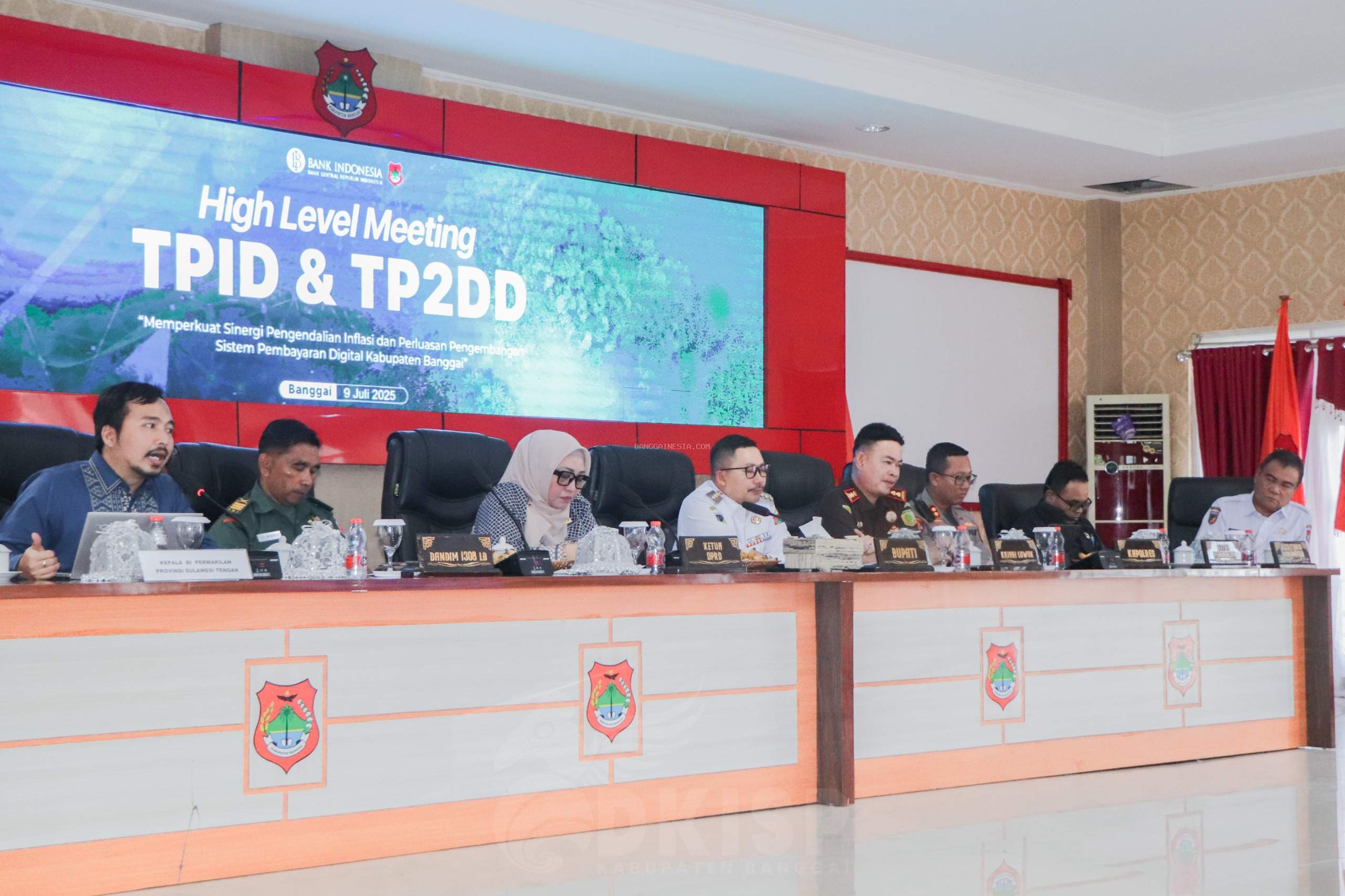 LUWUK SELATAN - Untuk memperkuat sinergisitas dalam pengendalian inflasi di Kabupaten Banggai, Tim Pengendalian Inflasi Daerah (TPID) menggelar rapat koordinasi (high level meeting), Rabu (9/7/2025), di Ruang Rapat Umum Kantor Bupati Banggai, Luwuk Selatan.