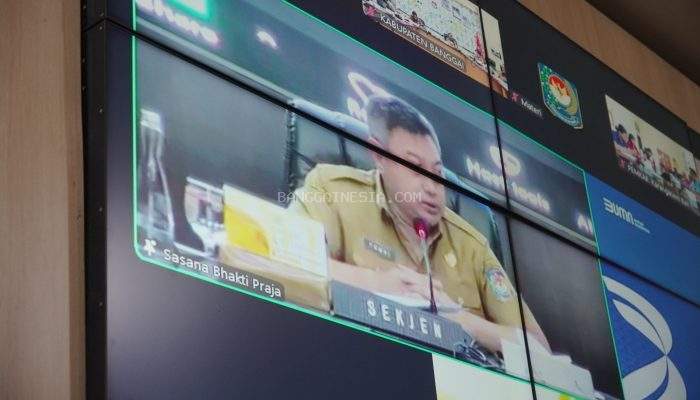 LUWUK – Penjabat Sekretaris Daerah (Pj. Sekda) Kabupaten Banggai, Ir. Moh. Ramli Tongko, S.Sos., S.T., M.Si., mengikuti rapat koordinasi (rakor) pengendalian inflasi secara virtual dari Ruang Rapat Khusus Kantor Bupati Banggai, Selasa, 29 Juli 2025.