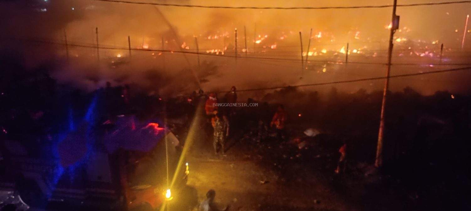 Hingga menjelang salat subuh, 04.00 WITA, api dibeberapa bagian masih tampak besar. Sementara di beberapa area yang lebih awal terbakar tampak menyisakan puing-puing material merah bara.
