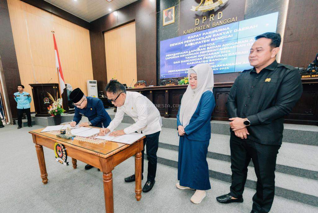 Pada kesempatan itu, dilakukan penandatangan Keputusan Bersama antara DPRD dan Bupati Banggai tentang penetapan Rancangan Peraturan Daerah Kabupaten Banggai tentang Pertanggungjawaban Pelaksanaan APBD Tahun Anggaran 2024 dan dilanjutkan dengan penyerahan dokumen LPKD.
