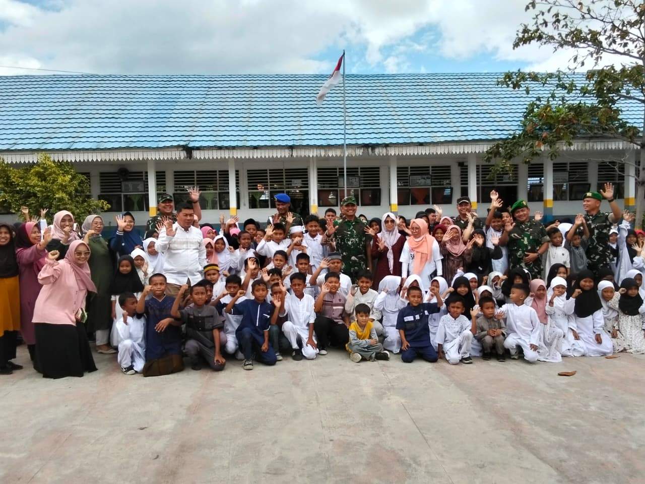 Di akhir acara, Pangdam Binsar secara simbolis membagikan makanan gratis dan berfoto bersama ratusan murid serta dewan guru SDN Simpong.