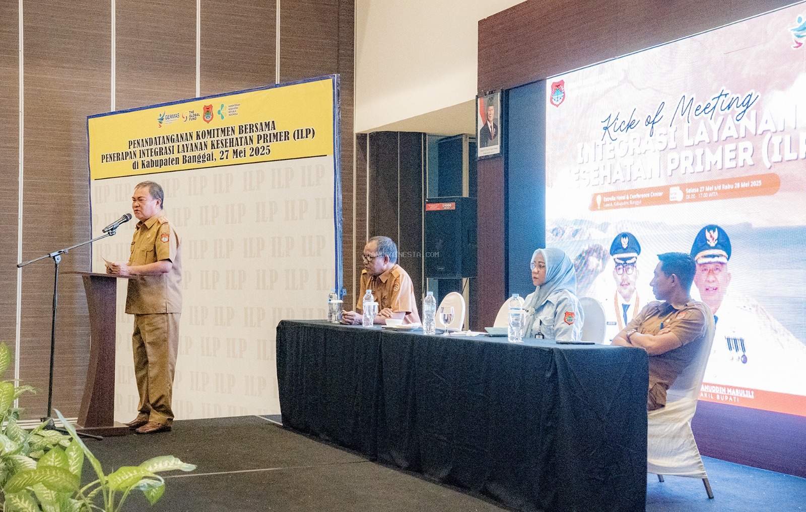 LUWUK - Pj Sekda Kabupaten Banggai Moh. Ramli Tongko, S.Sos., S.T., M.Si.* membuka acara Kick-Off Meeting Integrasi Layanan Kesehatan Primer (ILP) di Kabupaten Banggai Tahun 2025 sebagai tahap awal implementasi program ILP di Hotel Estrella Luwuk, Selasa (27/05/2025).