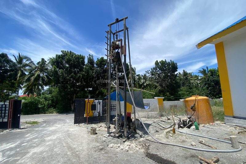 Salah satu langkah konkret yang kini dilakukan yakni pengeboran sumur bor di halaman depan Gudang PUPR Banggai, bersebelahan dengan pintu keluar kantor dinas tersebut.