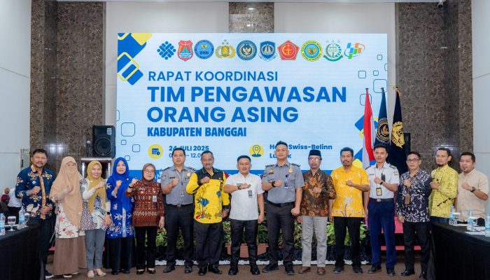 LUWUK – Mewakili Bupati Banggai, Asisten Perekonomian dan Pembangunan Setda Kabupaten Banggai, Mujiono, S.H., M.H., menghadiri pembukaan Rapat Koordinasi (Rakor) Tim Pengawasan Orang Asing (Timpora) Tahun 2025 yang digelar di Hotel Swiss-Belinn Luwuk, Kamis pagi (24/07).