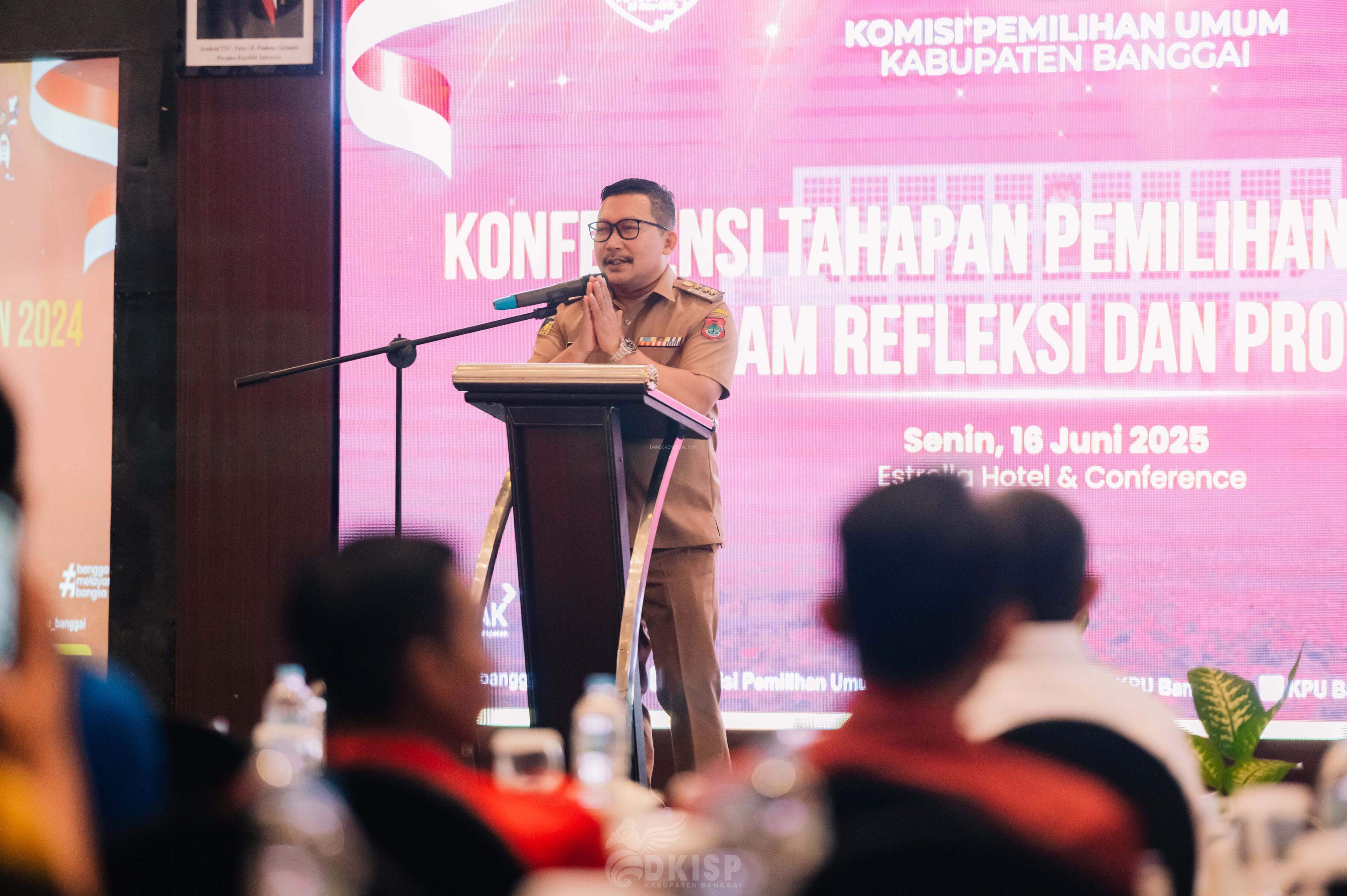 LUWUK - Komisi Pemilihan Umum (KPU) Kabupaten Banggai menggelar konferensi Refleksi dan Proyeksi dari Tahapan Pemilihan Tahun 2024, Senin (16/6/2025).