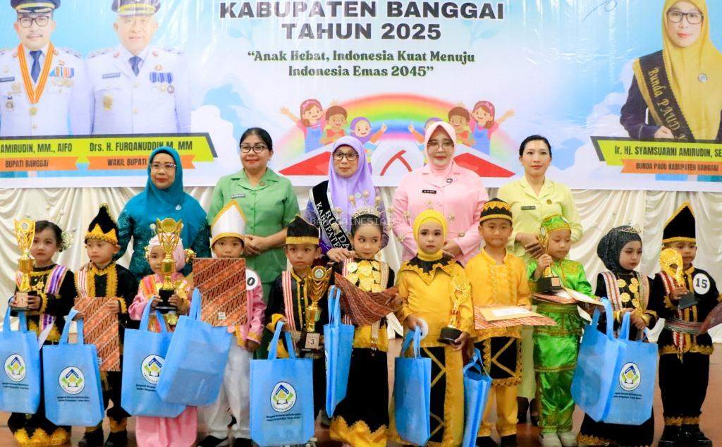 LUWUK - Rangkaian Kegiatan Peringatan Hari Anak Nasional 2025 di Kabupaten Banggai berlangsung meriah dengan digelarnya Gebyar PAUD di Gedung Graha Pemda, Selasa (19/8/2025).