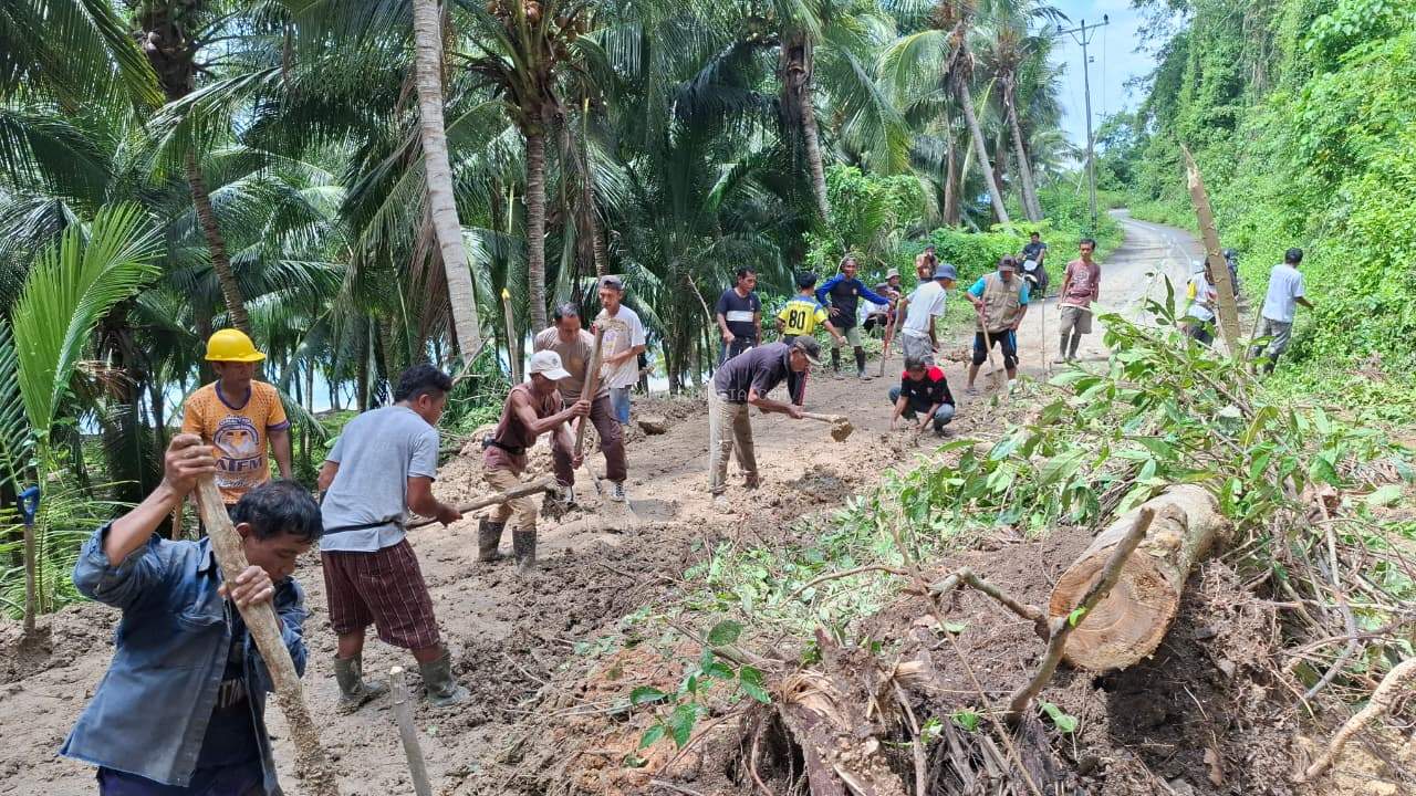 Jalan Mantoh-Balantak Sempat Terputus Akibat Longsor, Polisi dan Warga Bersihkan Material